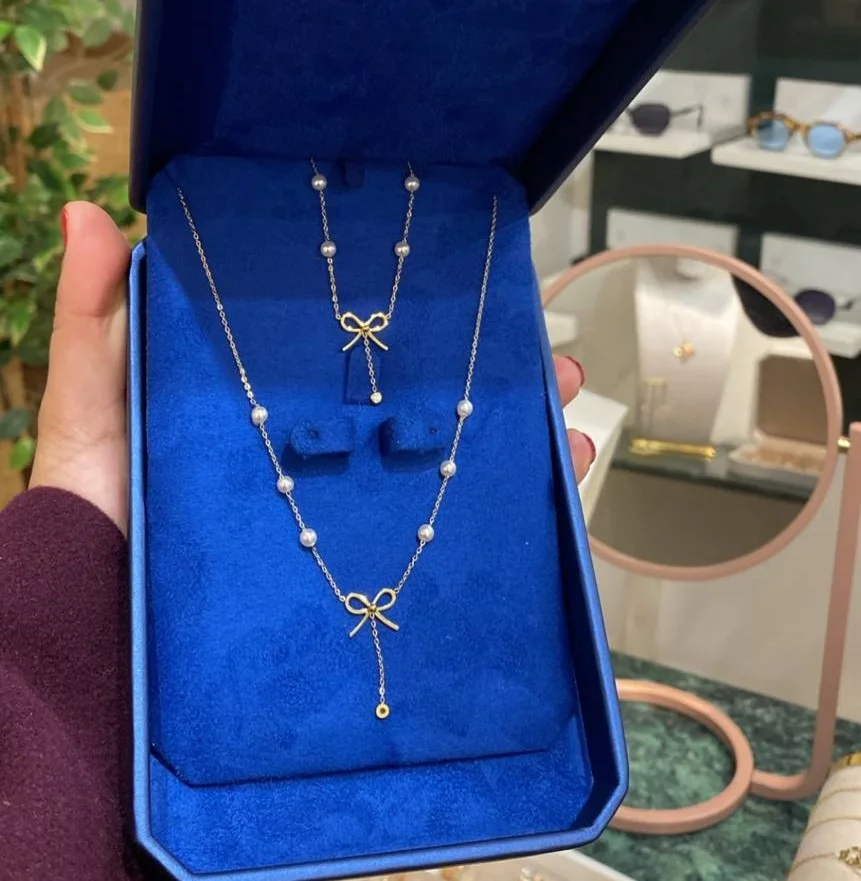 طقم عقد وأقراط أنيق مزين باللؤلؤ وتصميم عقدة رقيق.